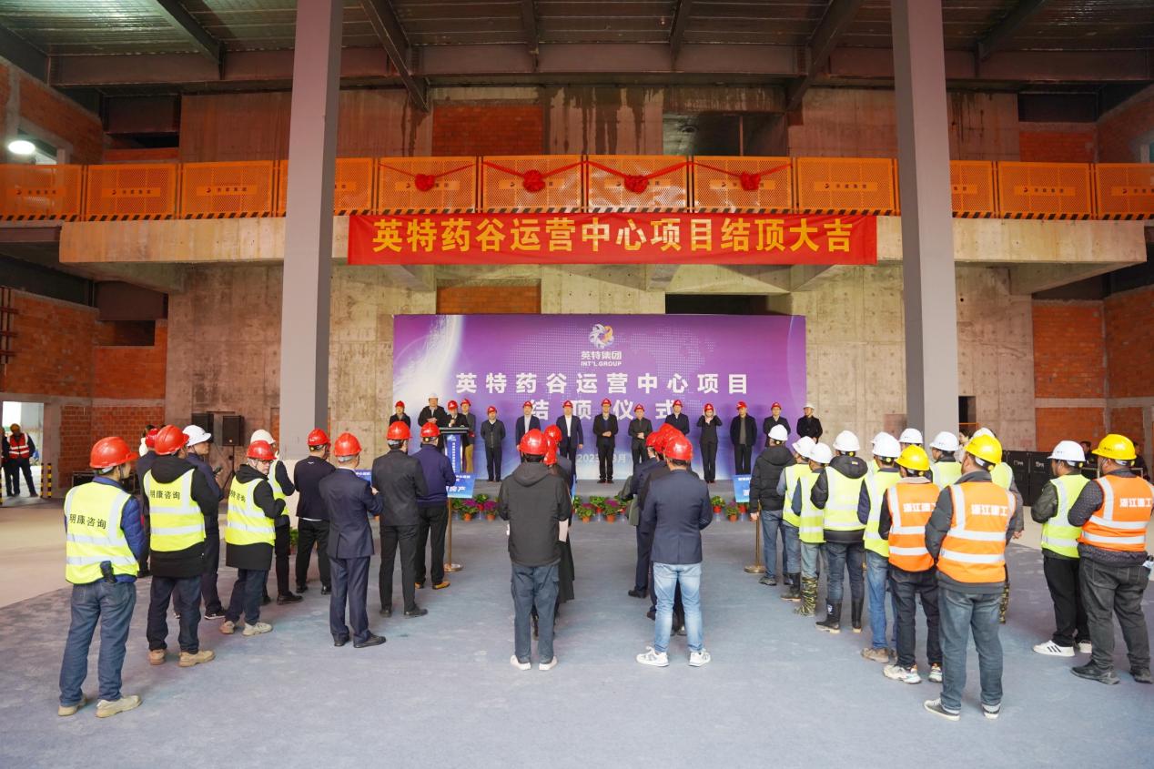 3月21日,英特藥谷運(yùn)營(yíng)中心項(xiàng)目結(jié)頂儀式順利舉行。省國(guó)貿(mào)集團(tuán)黨委委員、董事、副總經(jīng)理黃道領(lǐng),浙江省醫(yī)藥行業(yè)協(xié)會(huì)執(zhí)行會(huì)長(zhǎng)姜巨舫,拱墅區(qū)政府相關(guān)部門(mén)領(lǐng)導(dǎo),英特集團(tuán)黨委書(shū)記、董事長(zhǎng)應(yīng)徐頡等建設(shè)單位領(lǐng)導(dǎo)出席本次活動(dòng),與委托管理單位、施工單位、設(shè)計(jì)院、監(jiān)理公司、勘察院代表共同見(jiàn)證英特藥谷運(yùn)營(yíng)中心的結(jié)頂。