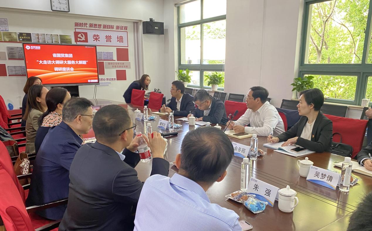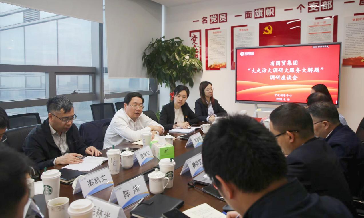 5月10日、11日,省國貿(mào)集團黨委委員、副總經(jīng)理黃道領一行來英特集團下屬寧波銷售中心、寧波物流開展入企服務調(diào)研,省國貿(mào)集團投資管理部相關負責人陪同。英特集團黨委副書記、工會主席楊永軍,黨委委員、副總經(jīng)理費榮富、呂寧,總經(jīng)理助理朱強,寧波銷售中心及相關企業(yè)經(jīng)營班子參加座談交流。
