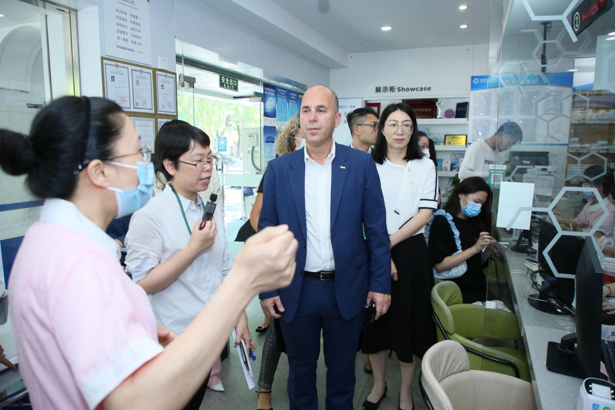 簽約會議前,Mark Sabag副總裁一行實地走訪了英特怡年清吟街店,詳細了解英特DTP藥房服務模式和流程。