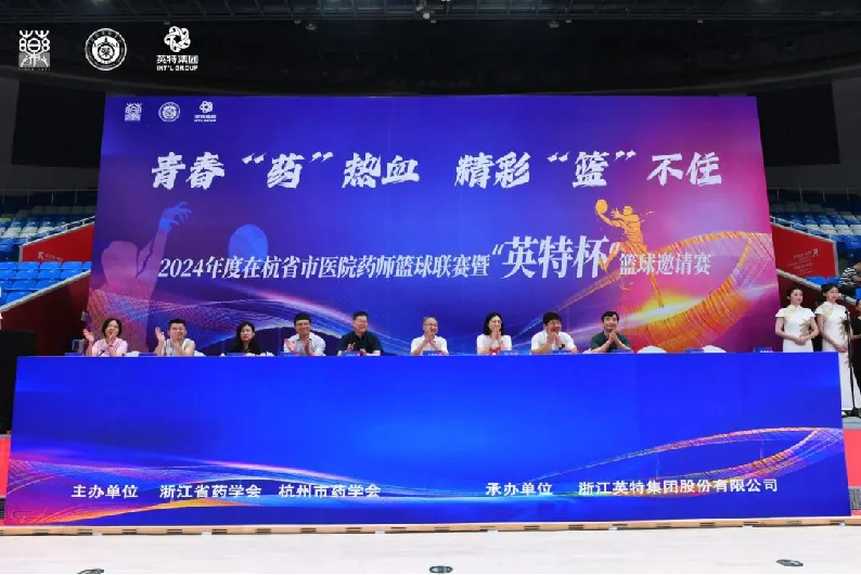 青春“藥”熱血,精彩“籃”不住。6月16日,由浙江省藥學(xué)會、杭州市藥學(xué)會主辦,英特集團(tuán)承辦的2024年度在杭省市醫(yī)院藥師籃球聯(lián)賽暨“英特杯”籃球邀請賽開幕式在杭州體育館隆重舉行。浙江省藥學(xué)會副理事長兼秘書長王志安、副秘書長王建平,杭州市藥學(xué)會副理事長兼秘書長王剛,在杭省市醫(yī)院藥劑科負(fù)責(zé)人,英特集團(tuán)總經(jīng)理汪洋,黨委副書記、工會主席李曉光等領(lǐng)導(dǎo)出席?;顒拥玫搅苏愦笠辉骸⒄愦蠖?、市一醫(yī)院等在杭醫(yī)院的積極響應(yīng),來自近20家醫(yī)院的157名藥師球員參賽。